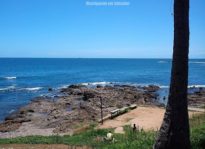 O restaurante fica entre Ondina e o Rio Vermelho, na praia da Pedra da Sereia. Na lateral, existe uma espécie de estacionamento não muito grande. Como eu cheguei cedo, não foi difícil encontrar uma vaga, gentil e eficientemente indicada por um flanelinha (sim, estou irônico).